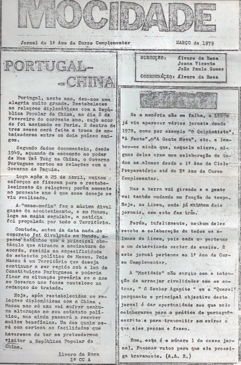 1979: "A Mocidade" o Jornal do 1º ano do Curso Complementar que viriam a ser os finalistas de 1980/81; A Direcção era composta pelo Alvaro Rosa, João Paulo Gomes e Joana Vicente .